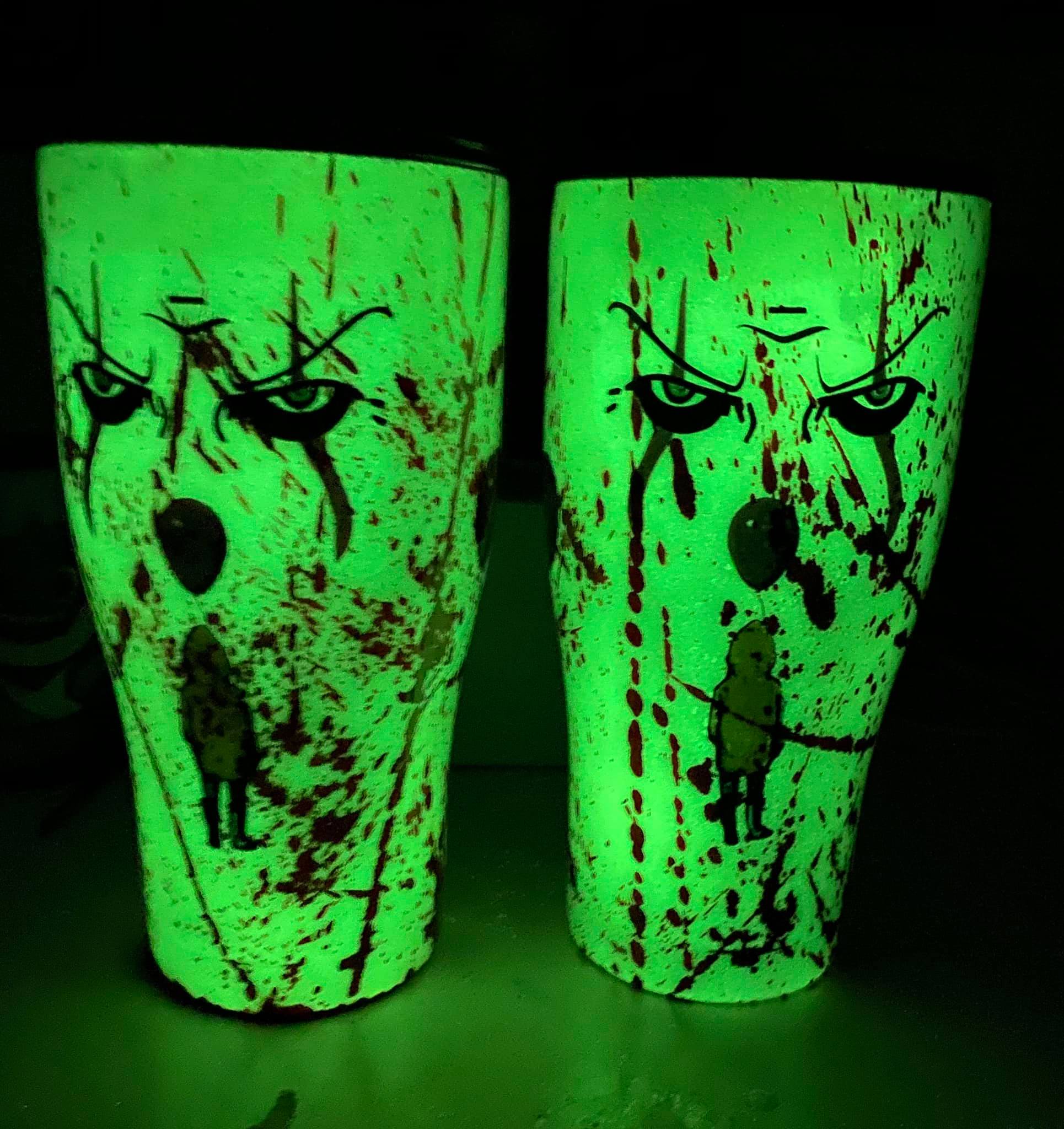 Our Pennywise tumbler isn't just a bloody mess and it glows in the dark too. We all float down here when using this cup. This stainless steel tumbler cup will keep any drink hot or cold for hours. Feel free to message us with any customizations or changes you would like to make to the cup.